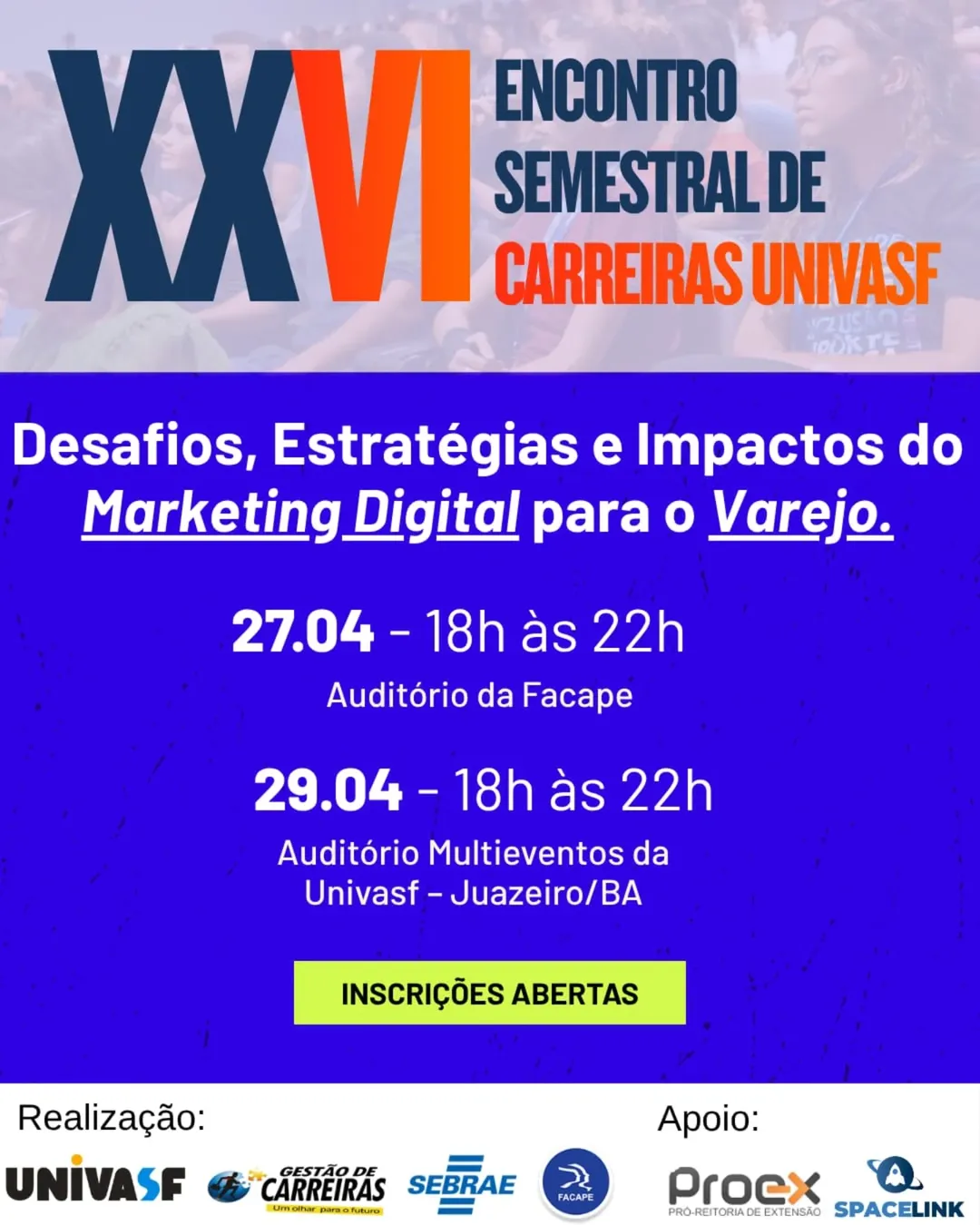 XXVI Encontro Semestral de Carreiras Univasf: Desafios, Estratégias e Impactos do Marketing Digital para o Varejo