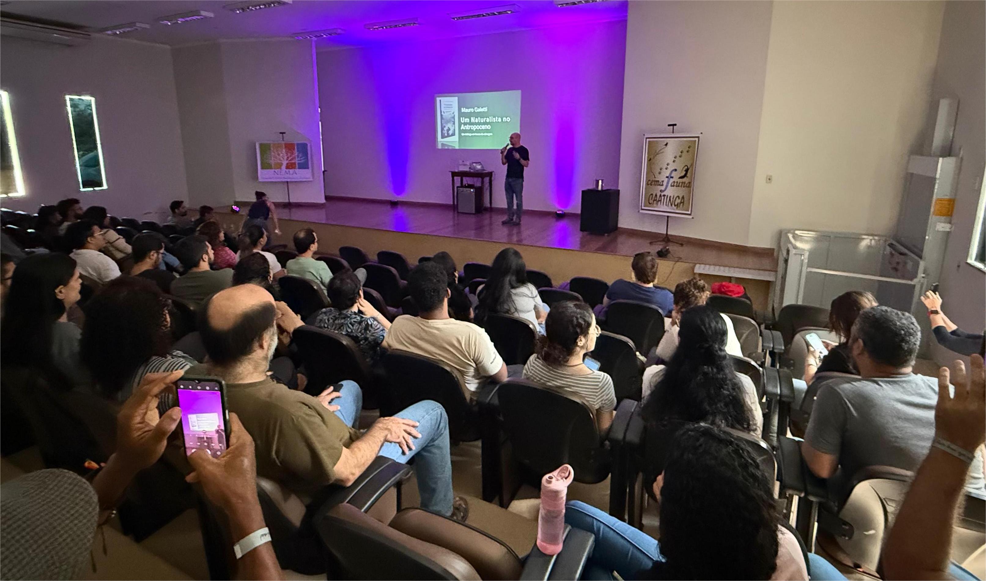 O auditório do Museu de Fauna da Caatinga, no Centro de Conservação e Manejo de Fauna da Caatinga (Cemafauna), vinculado à Universidade Federal do Vale do São Francisco (Univasf), foi palco de uma palestra inesquecível com o cientista e professor doutor Mauro Galetti. Intitulada “Um naturalista no Antropoceno: um biólogo em busca do selvagem”, a atividade reuniu biólogos, estudantes, professores e pesquisadores ligados ao Cemafauna e ao Núcleo de Ecologia e Monitoramento Ambiental (NEMA/Univasf), que prestigiaram com entusiasmo o evento.