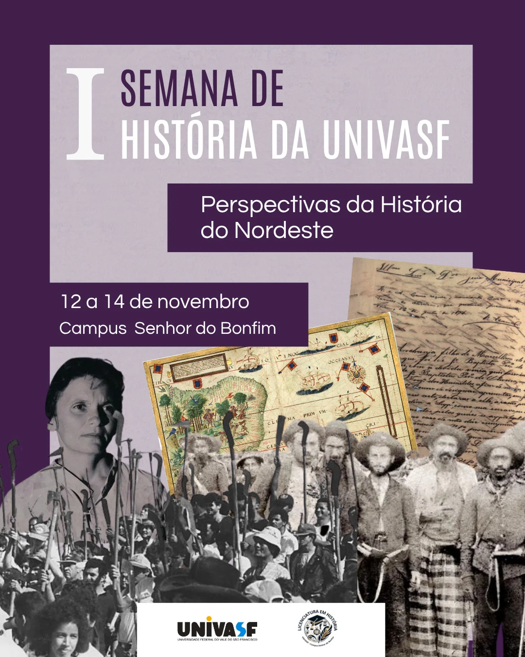 Com o tema “Perspectivas da História do Nordeste”, o Colegiado de História (Cohis) da Universidade Federal do Vale do São Francisco (Univasf) promoverá a I Semana de História da Univasf, de 12 a 14 de novembro de 2025, no Campus Senhor do Bonfim. O evento reunirá pesquisadores, professores e estudantes em mesas-redondas, minicursos, palestras e lançamento de livros. A participação é gratuita e aberta à comunidade acadêmica e ao público em geral. As inscrições já estão abertas.