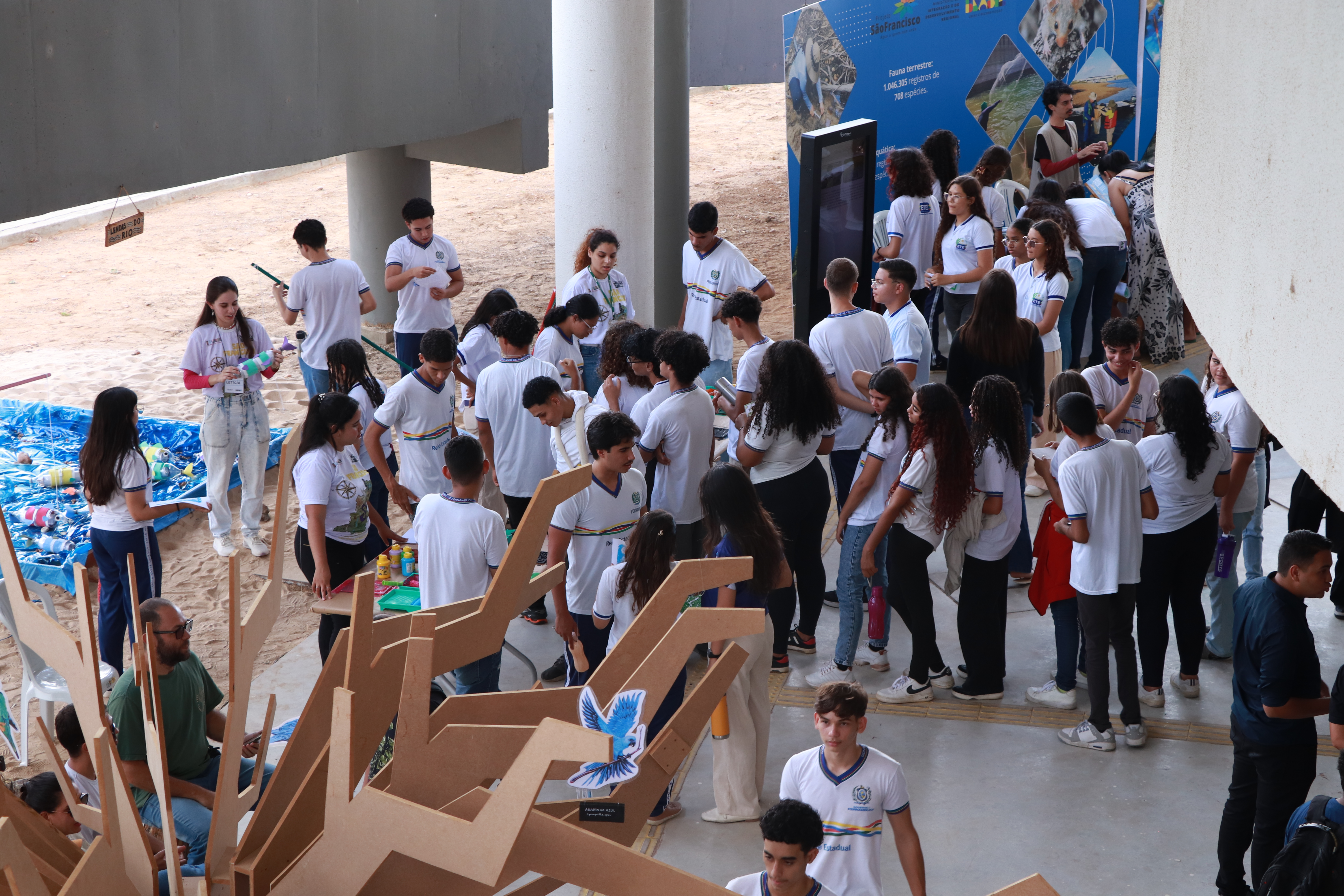 As exposições, distribuídas por todo o hall térreo do EACC, conectaram ciência, cultura, memória, biodiversidade e afetos ribeirinhos. O público pôde vivenciar desde as histórias e tradições do Velho Chico até as relações entre o sertão e os ecossistemas marinhos, em uma narrativa construída a partir do projeto aprovado pelo edital nacional Pop Ciência CNPq/MCTI, que integrou oficialmente a programação da SNCT.