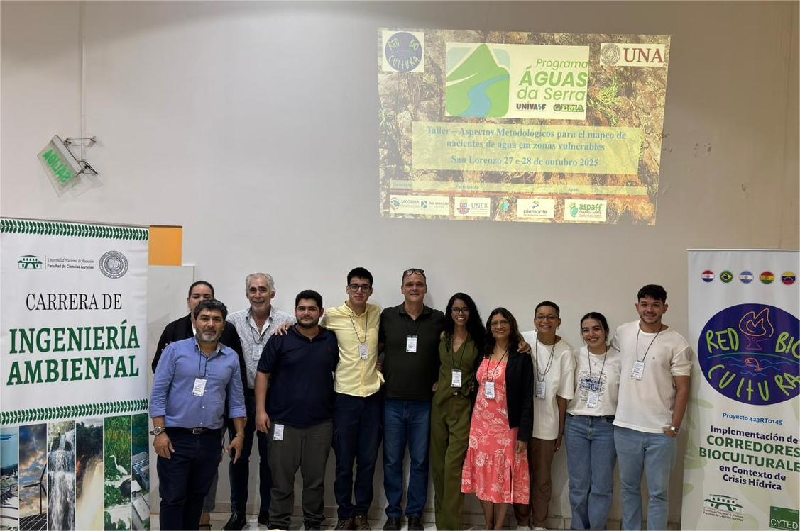 Do semiárido brasileiro ao semiárido paraguaio, o conhecimento atravessou fronteiras e aproximou realidades. Estudantes da Universidade Federal do Vale do São Francisco (Univasf) participaram, entre os dias 24 e 30 de outubro, de um intercâmbio acadêmico na Universidad Nacional de Asunción (UNA), em San Lorenzo. Durante a visita, foi realizada uma oficina na qual foi apresentado o projeto de extensão “Mapeamento e Caracterização de Nascentes e Recursos Hídricos nas Serras da Jacobina”, coordenado pelo professor do Colegiado de Geografia (CGeo) Gustavo Hees de Negreiros. A atividade integrou as ações da Rede Biocultura, da qual pesquisadores da Univasf fazem parte, juntamente com representantes de universidades do Brasil, Paraguai, Argentina, Bolívia, Venezuela e México.