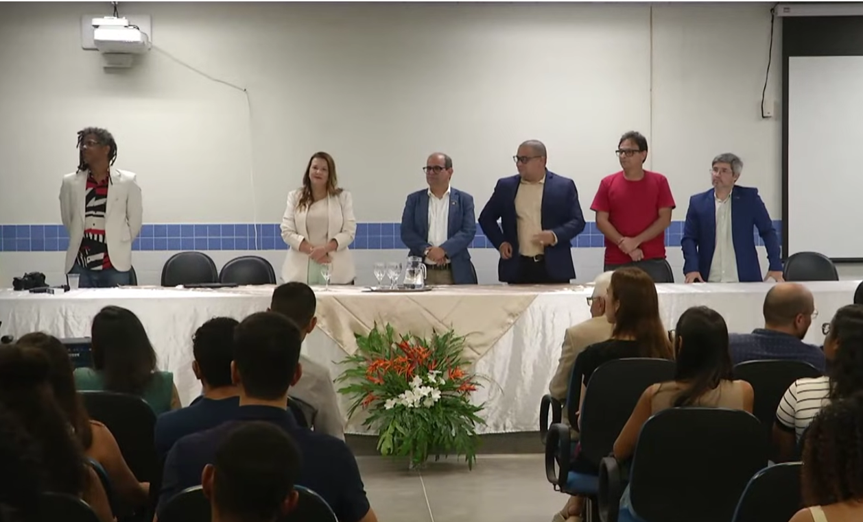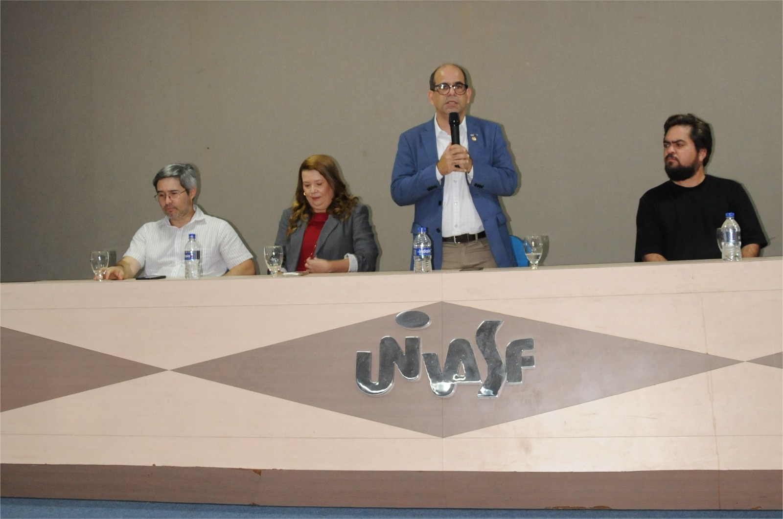 Ainda na quarta-feira, à noite, o reitor Telio Leite participou da abertura do período letivo 2026.1 do Programa de Pós-Graduação em Ensino (PPGENS), realizada no auditório da biblioteca do Campus Senhor do Bonfim (BA). A atividade contou com palestra ministrada pelo presidente do CNPq, Olival Freire Junior, sobre o tema “Ciência na história do Brasil”. O reitor compôs a mesa de abertura juntamente com a pró-reitora de Pesquisa, Pós-Graduação e Inovação, Helena Matos; o diretor superintendente de Políticas Afirmativas, Antirracismo e Diversidade, Nilton de Almeida; o diretor de Pós-Graduação, Daniel Menezes; o coordenador do PPGENS, Albano Goes; e o coordenador do Colegiado de História do Campus Senhor do Bonfim, José Eduardo Clemente, representando os cursos de graduação do campus. O evento reuniu estudantes, docentes e técnicos da Univasf.