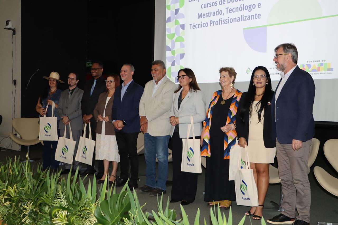 A vice-reitora Lúcia Marisy de Oliveira participou, na manhã de segunda-feira (16), do lançamento de cursos voltados para a agricultura familiar: Tecnólogo em Gestão e Técnico Profissionalizante em Administração, promovidos pela Companhia Nacional de Abastecimento (Conab). O evento foi realizado no Centro de Desenvolvimento de Recursos Humanos da Companhia (CDRH), em Brasília (DF), e contou com a presença de diversas autoridades, como o presidente da Conab, Edegar Pretto, e o diretor de Desenvolvimento, Inovação e Gestão de Pessoas da instituição, Lenildo de Moraes.