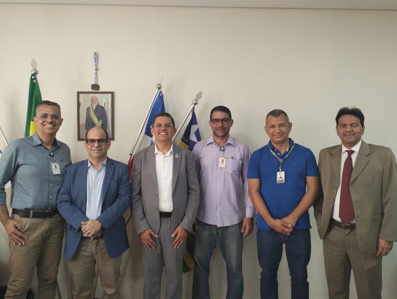 O reitor Telio Leite recebeu o reitor da Universidade Federal do Delta do Parnaíba (UFDPar), João Paulo Sales Macedo, para uma visita ao Hospital Universitário (HU-Univasf) e à Reitoria, na manhã da terça-feira (19). Macedo veio acompanhado do pró-reitor de Planejamento, Osmar Gomes de Alencar Júnior, e do prefeito Universitário da UFDPar, Moyses Barbosa da Silva Filho. Também estiveram presentes à visita o superintendente do HU-Univasf, Julianeli Tolentino, e o gerente de Ensino e Pesquisa do HU, Ricardo Santana de Lima.