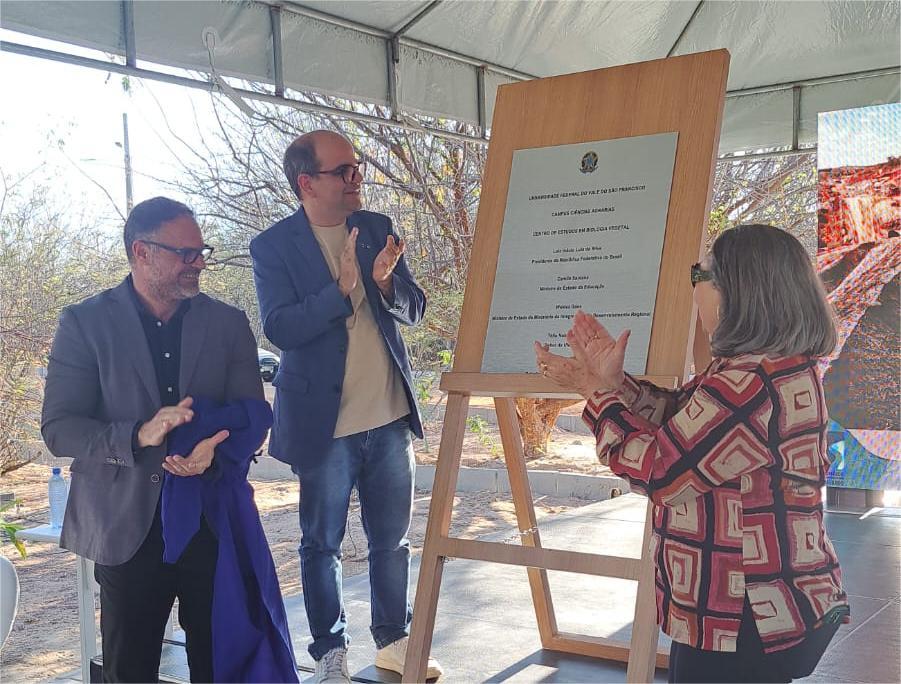 Na quinta-feira (14) à tarde, o reitor Telio Leite participou da solenidade de inauguração do Centro de Estudos em Biologia Vegetal (Cebive), no Campus Ciências Agrárias (CCA). A solenidade contou com a presença da coordenadora geral dos Programas Ambientais do Ministério da Integração e do Desenvolvimento Regional (MIDR), Elianeiva Odisio; e do coordenador do Cebive, Daniel Pifano. Também estiveram presentes docentes, técnicos, pesquisadores e estudantes da Univasf.