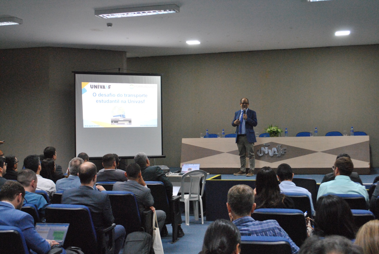 O reitor Telio Leite participou da solenidade de abertura da Segunda Reunião Ordinária do Fórum Nacional de Pró-Reitores de Planejamento e Administração (Forplad) 2025 das Ifes, realizada na tarde da terça-feira (19), no auditório da biblioteca do Campus Sede, em Petrolina (PE). Na ocasião, ele apresentou a palestra “O Desafio do Transporte Estudantil da Univasf”. O Forplad discutiu práticas de gestão e desafios do planejamento e da administração no âmbito da educação superior pública e contou com a presença da vice-reitora da Univasf, Lucia Marisy de Oliveira; do coordenador Nacional do Forplad, Evandro Rodrigues de Faria; do coordenador da Regional Nordeste do Forplad, Franklin Matos; do pró-reitor de Gestão e Orçamento da Univasf, Francisco Alves Pinheiro; e da pró-reitora de Planejamento e Desenvolvimento Institucional, Margareth Pereira Andrade.