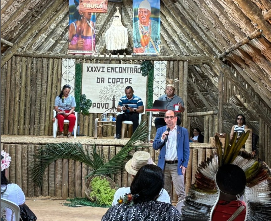 Na manhã do sábado (23), o reitor esteve no Território Indígena do Povo Truká, em Orocó (PE), onde participou dos debates da Universidade Indígena, durante o XXXVI Encontrão do Movimento da Educação Escolar Indígena em Pernambuco, coordenado pela Comissão de Professores/as Indígenas de Pernambuco (Copipe). Também esteve presente o coordenador-geral de Articulação de Políticas Educacionais Indígenas do Ministério dos Povos Indígenas, Edilson Baniwa. O reitor representou a Andifes, junto com outras reitoras e reitores, e reafirmou o compromisso da Univasf em contribuir para a construção e implantação da Universidade Indígena, que terá atuação em todo o território nacional, assegurando o direito a uma educação específica, diferenciada e intercultural.