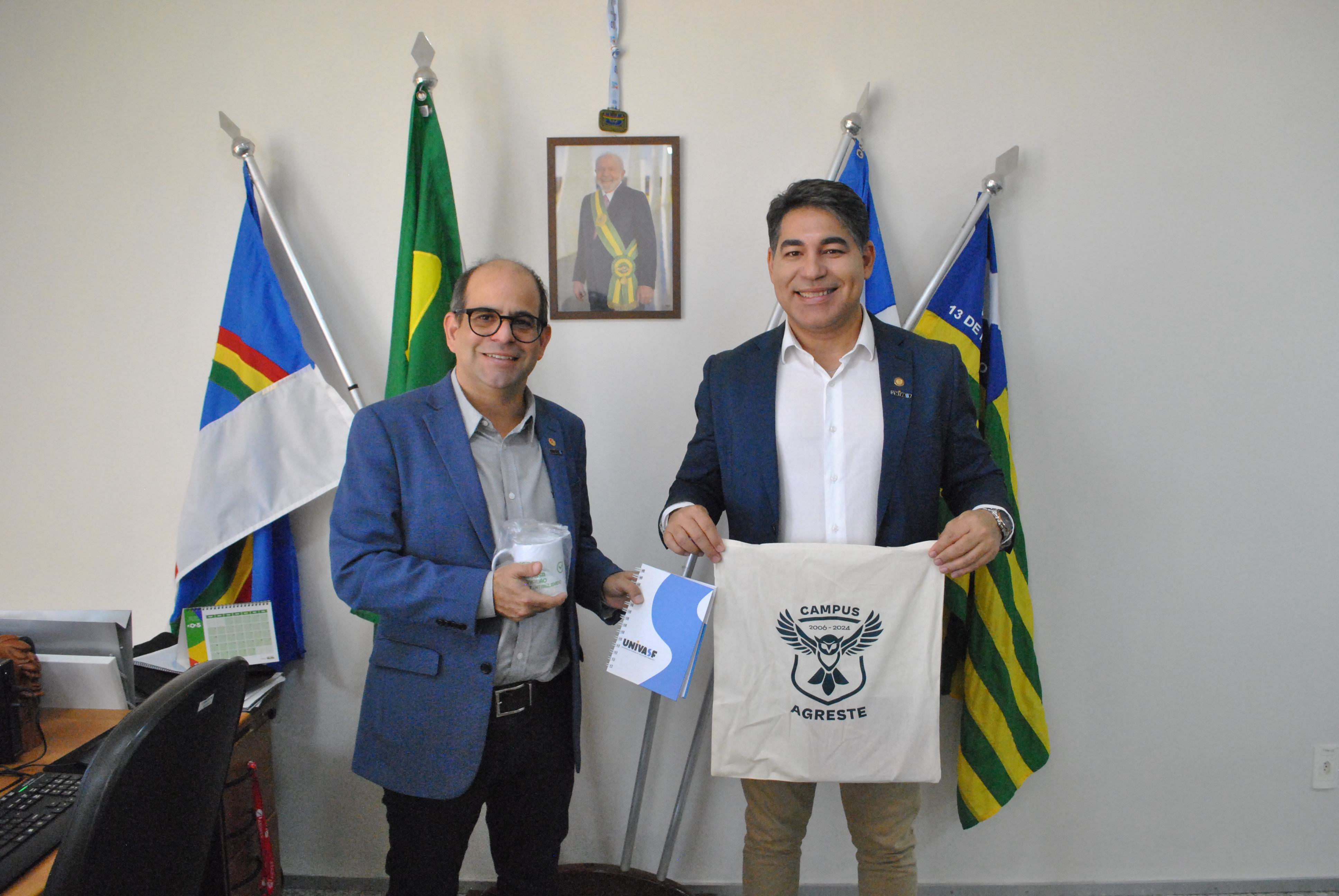 Na manhã da segunda-feira (25), o reitor Telio Leite recebeu a visita do professor Dilson Cavalcanti, diretor do Centro Acadêmico do Agreste (CAA) da Universidade Federal de Pernambuco (UFPE). O CAA está localizado na cidade de Caruaru, no agreste pernambucano. Durante o encontro, foram discutidas parcerias para desenvolver e fortalecer o ensino público superior no interior de Pernambuco.