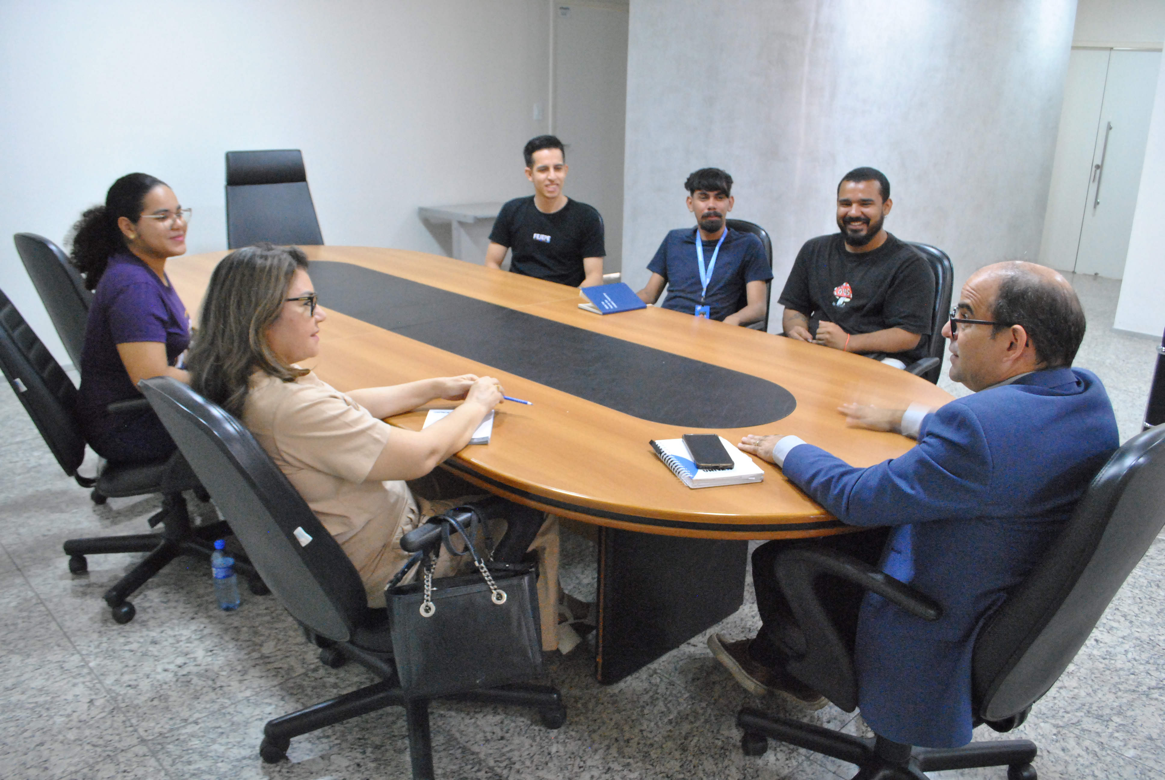 Na tarde da segunda-feira (25), o reitor Telio Leite esteve reunido com representantes de Empresas Juniores para tratar de assuntos relacionados à atuação das EJs, entre elas a possibilidade de um local para as EJs no Porto Digital, quando o hub de inovação estiver em funcionamento no prédio do Espaço Arte, Ciência e Cultura (EACC). Participaram do encontro os estudantes Douglas Peixoto, da Prospere Jr; Luiz Galdino, da Preserve Jr; Jullie Marrie Rodrigues Silva, da Formular Jr; e Ellian Paixão, especialista de desenvolvimento da Federação das Empresas Juniores do Estado de Pernambuco (Fejepe). A diretora de Extensão, Audimar de Souza Alves, também participou da reunião e informou os representantes sobre a realização da 1ª Jornada das Empresas Juniores da Univasf, na 18ª Semana de Ensino, Pesquisa, Tecnologia e Extensão (Scientex), que acontecerá de 26 a 28 de novembro, no Campus Sede, em Petrolina (PE).