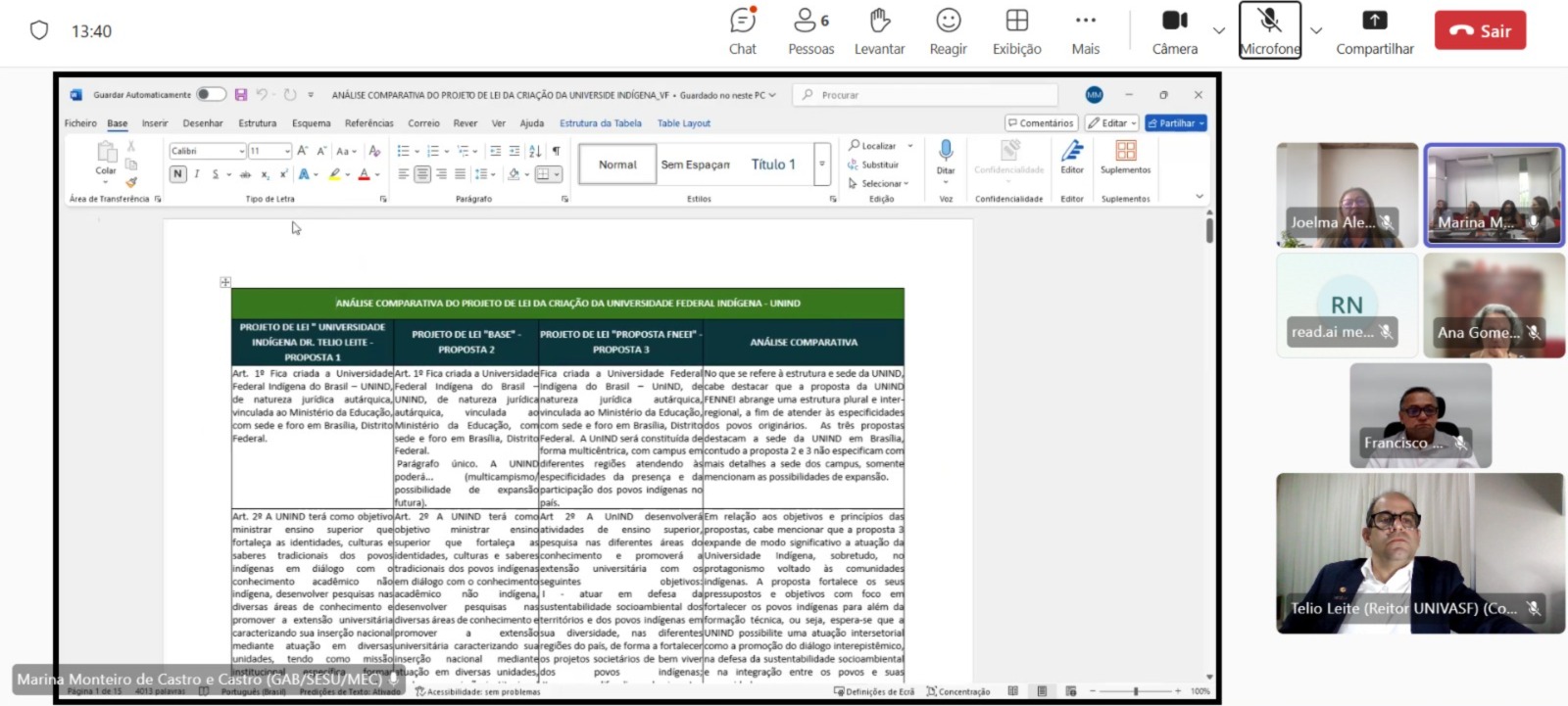 No final da tarde da quarta-feira (3), o reitor participou de reunião dos sub-grupos de trabalho da Universidade Indígena. A reunião aconteceu de forma remota com a participação de representantes do Governo Federal, de diversas instituições de ensino superior e dos povos indígenas.