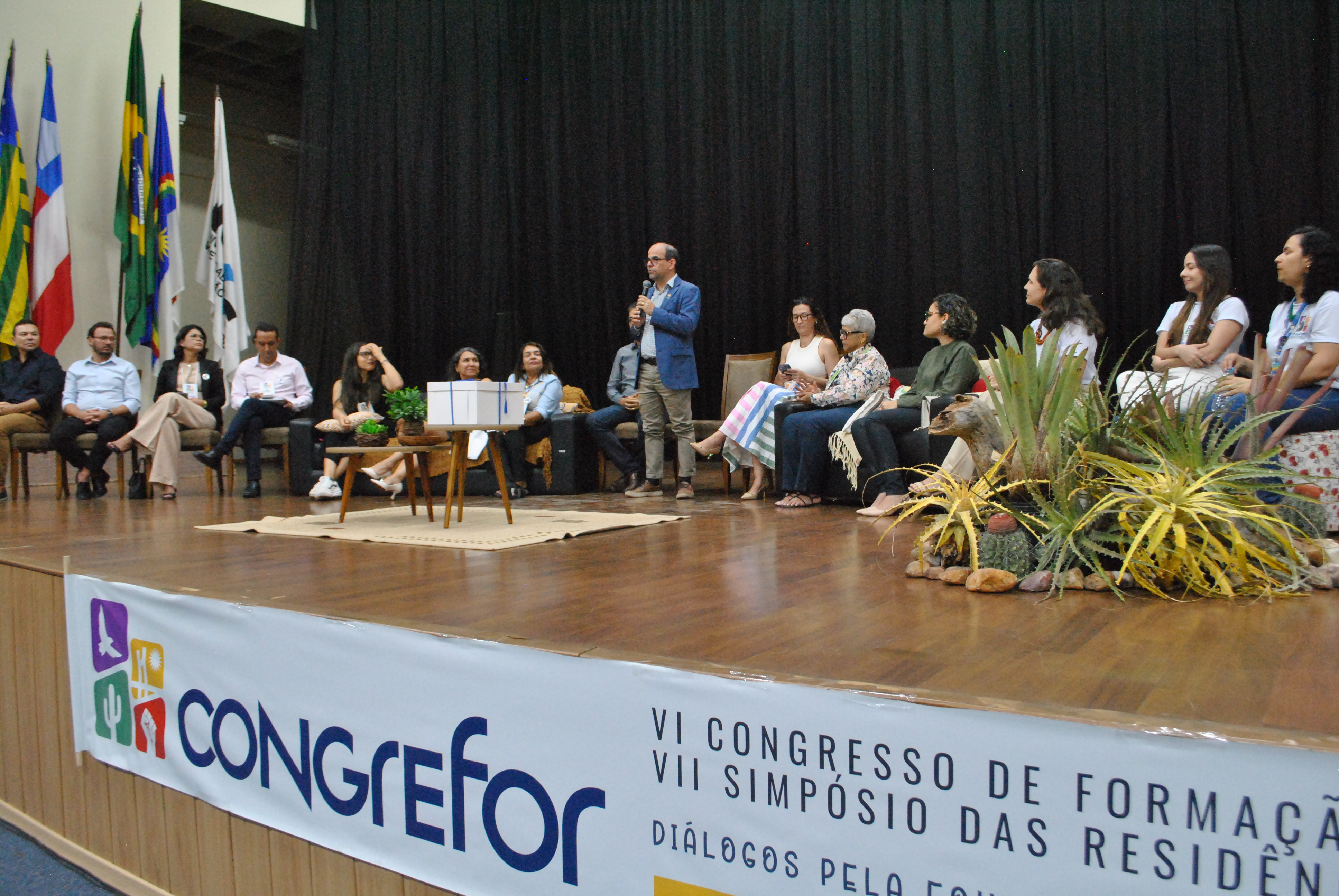 O reitor Telio Leite esteve presente à solenidade de abertura do VI Congresso de Formação para o SUS (Congrefor) e do VII Simpósio de Residências em Saúde do Vale do São Francisco (Simpres), realizada na tarde da quarta-feira (24), no Complexo Multieventos, no Campus Juazeiro. O evento foi organizado pelo PET-Saúde/Equidade, pelas Residências em Saúde da Univasf e pelo PET-Saúde/Equidade da Universidade de Pernambuco (UPE). A abertura também teve a presença do superintendente do Hospital Universitário (HU-Univasf), Julianeli Tolentino; da pró-reitora de Ensino em exercício, Sued Sheila Sarmento; da coordenadora geral do evento, Michelly Rabelo; e dos secretários de Saúde de Juazeiro, Helder Silveira Coutinho; de Petrolina, João Luiz Nogueira; de Lagoa Grande, Ana Araújo; e de Dormentes, Talita Mirele Rodrigues, além do professor Emerson Elias Merhy, médico sanitarista que integrou o movimento de reforma sanitária no Brasil e contribuiu para a criação do campo da Saúde Coletiva.