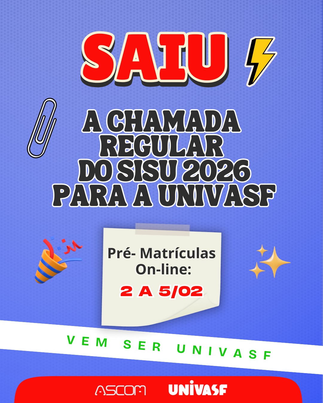 Univasf divulga aprovados na chamada regular do Sisu 2026 e convoca para pré-matrícula on-line