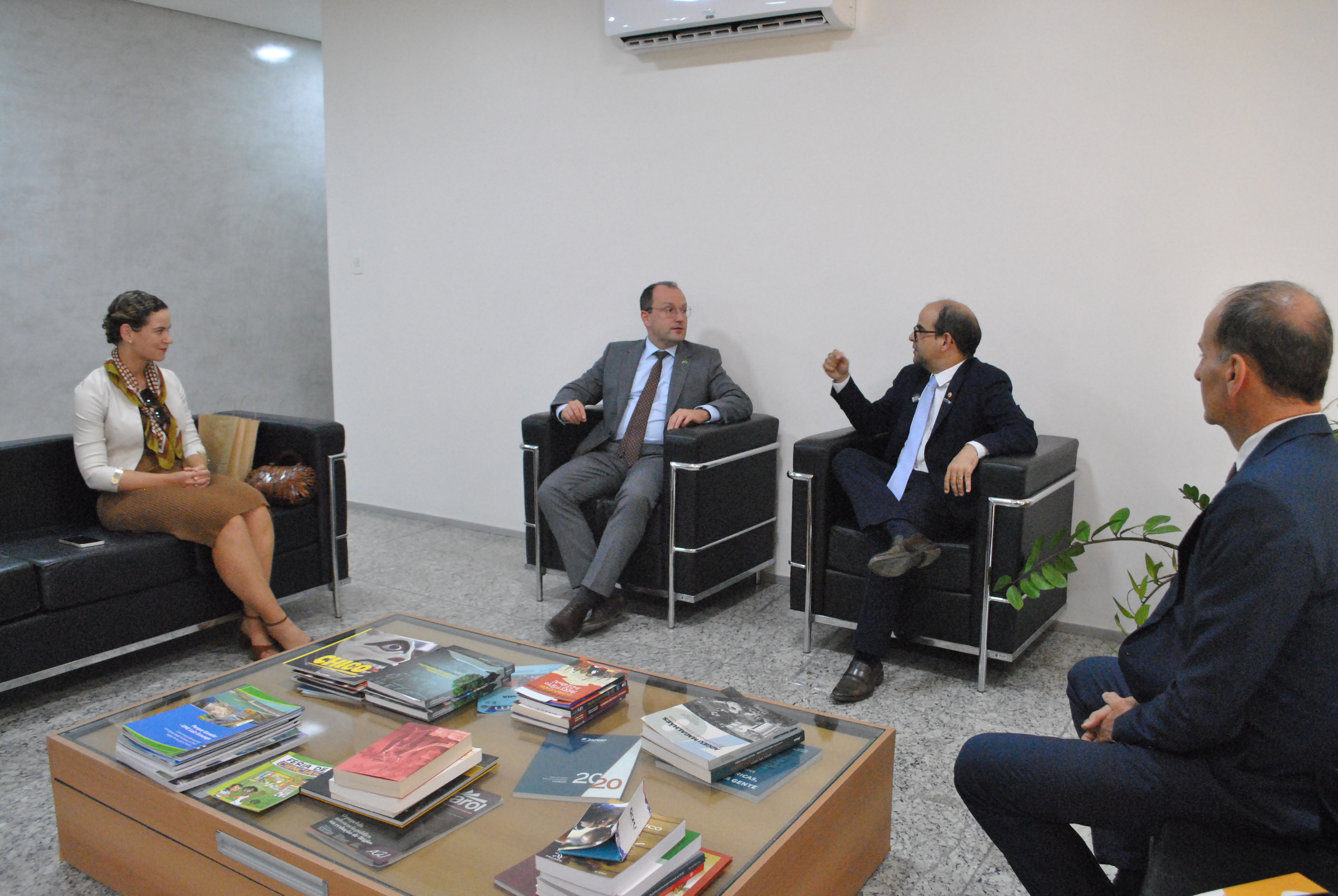 Parcerias de cooperação internacional com instituições de ensino e pesquisa húngaras foram discutidas durante reunião entre o reitor da Universidade Federal do Vale do São Francisco (Univasf), Telio Nobre Leite, e o embaixador da Hungria, Miklos Tamás Halmai. A reunião foi realizada no gabinete da Reitoria, na quinta-feira (30), e contou com a participação da adida comercial da Hungria no Brasil, Kinga Somogyi, e do professor Nicola Andrian, que integra a equipe da Assessoria de Relações Internacionais (ARI) da Univasf.