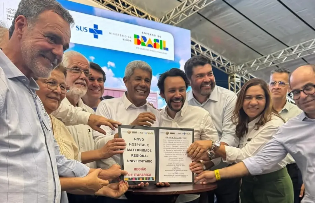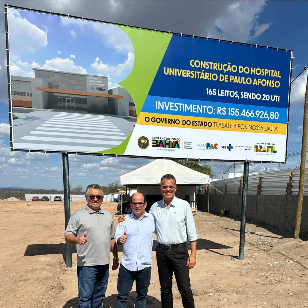 A Ordem de Serviço para a construção do novo Hospital e Maternidade Regional Universitário de Paulo Afonso foi assinada pelo governador da Bahia, Jerônimo Rodrigues, e pela secretária de Saúde do Estado, Roberta Santana, na última sexta-feira (7). O reitor da Universidade Federal do Vale do São Francisco (Univasf), Telio Nobre Leite, esteve presente, acompanhado do superintendente do HU-Univasf, Julianeli Tolentino, que representou o presidente da Empresa Brasileira de Serviços Hospitalares (Ebserh), Arthur Chioro; do pró-reitor de Gestão e Orçamento da Univasf, Francisco Pinheiro. O ato foi realizado no local onde será construído o novo hospital.