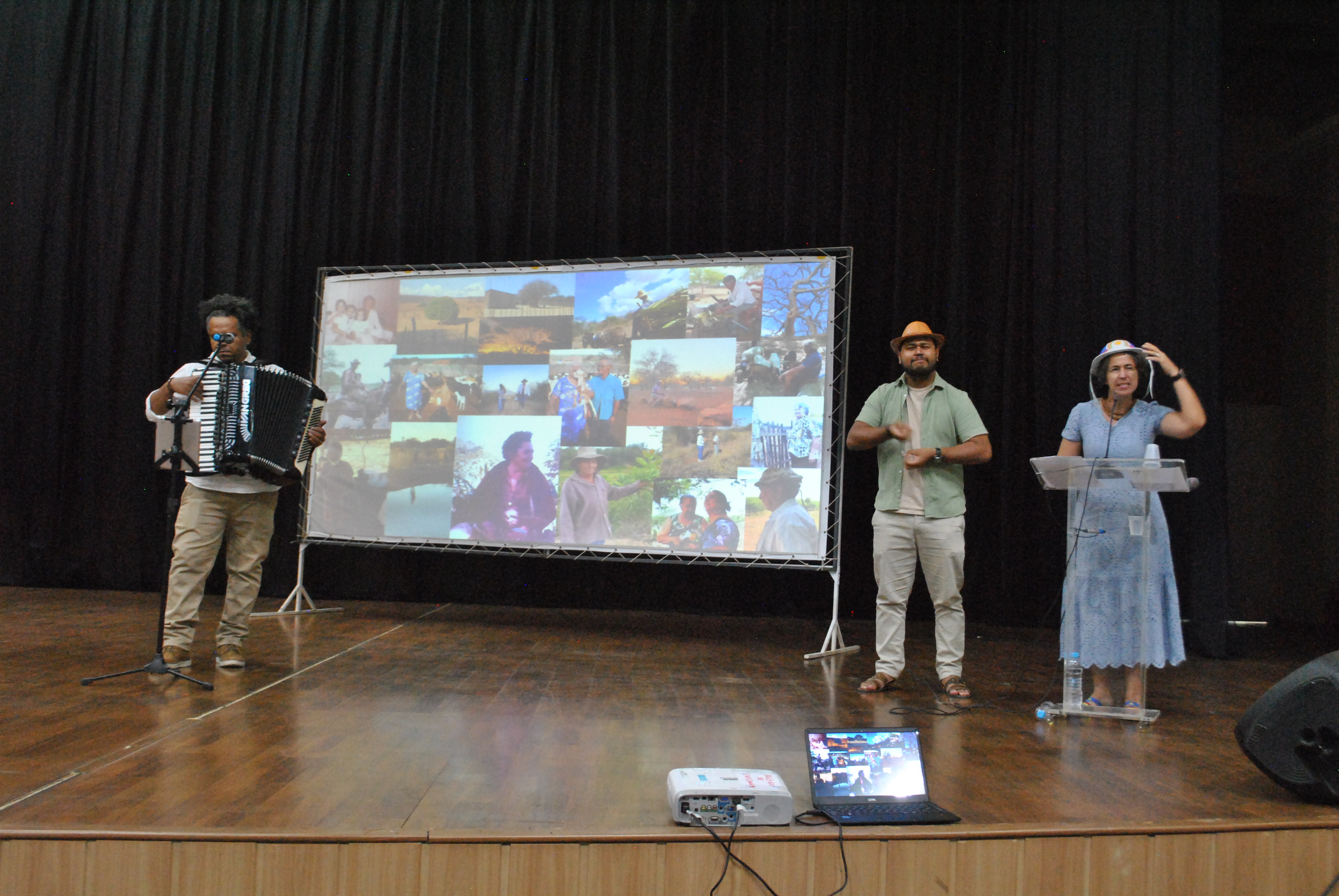A professora do Colegiado de Psicologia Karla Daniele Maciel Luz e o cantor, compositor e sanfoneiro Ivan Greg apresentaram o poema musicado “Por uma Gonzagueana Humana/Equidade”. A apresentação contou com a participação do tradutor e intérprete de Libras (Língua Brasileira de Sinais) da Univasf Davi Lima.