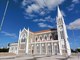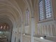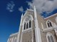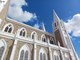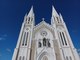 A igreja apresenta uma planta cruciforme com três naves e ábside, destacando-se pelo pé-direito elevado e abóbadas ogivais. A estrutura é composta por colunas de feixes de colunelos, grandes rosáceas e vitrais, sustentada por arcos botantes e telhados íngremes. O projeto arquitetônico, de autoria do engenheiro italiano Da Rin, incorpora elementos góticos, como torres pontiagudas e vitrais franceses. A execução, sob a responsabilidade da construtora Emílio Odebrecht & CIA, destaca-se pela estucaria refinada, utilizando pedras locais e evocando o estilo gótico medieval na fachada.