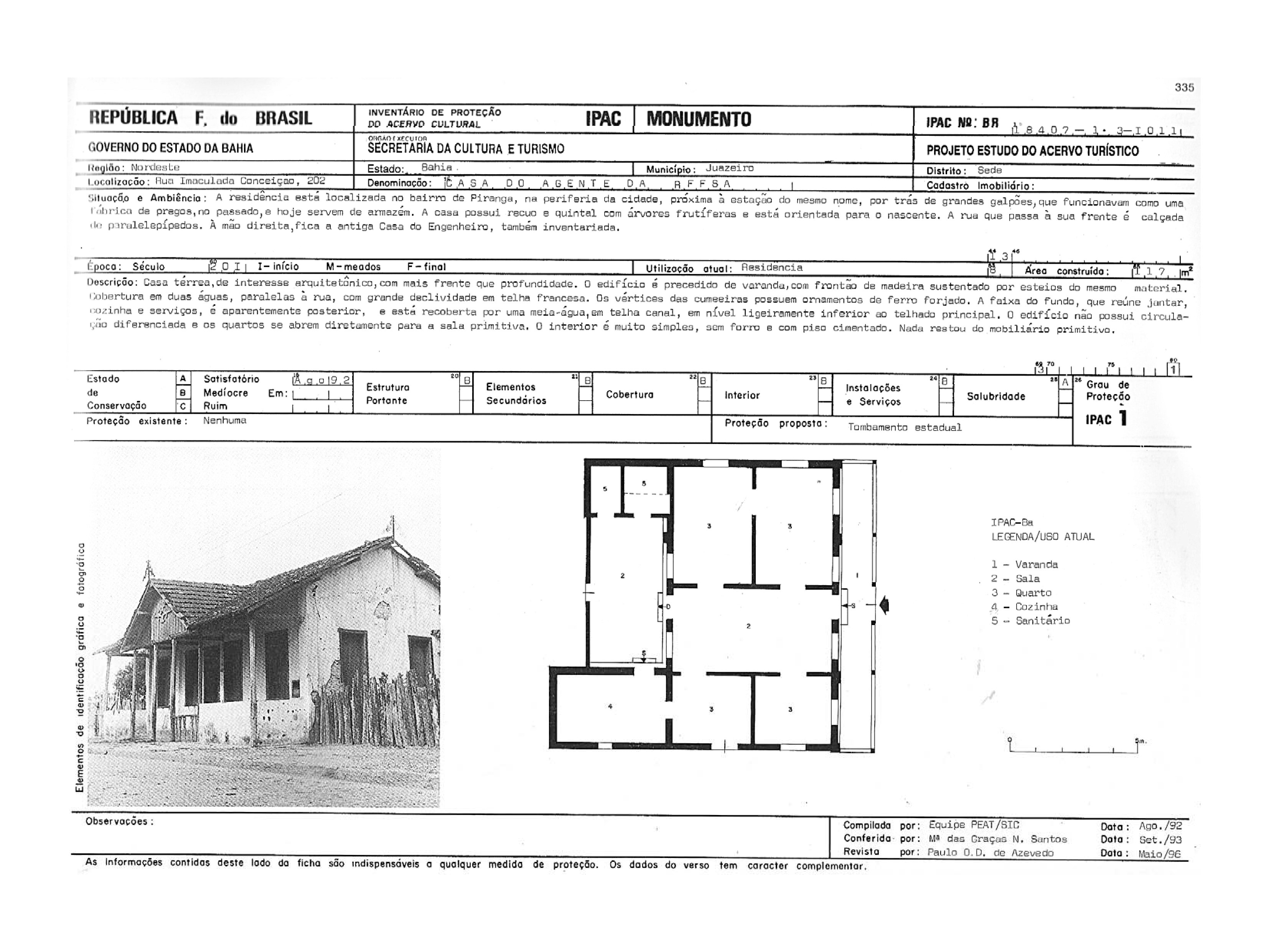 A edificação é datada do final do século XIX, em estilo arquitetônico eclético. A residência possui um pavimento em estrutura de tijolo de barro cozido. Cobertura em quatro águas em telha francesa e sustentadas por tesouras do tipo paládio e terminação em beiral simples. Possui uma varanda com frontão e empena sustentadas por esteios, ambos em madeira. As esquadrias, uma porta com bandeira e quatro janelas são de madeira. Posteriormente foi acrescido um muro na sua fachada frontal com portões e grades vazadas de ferro. Encontra-se tombada pelo município, através da Lei N° 1.667/2002.