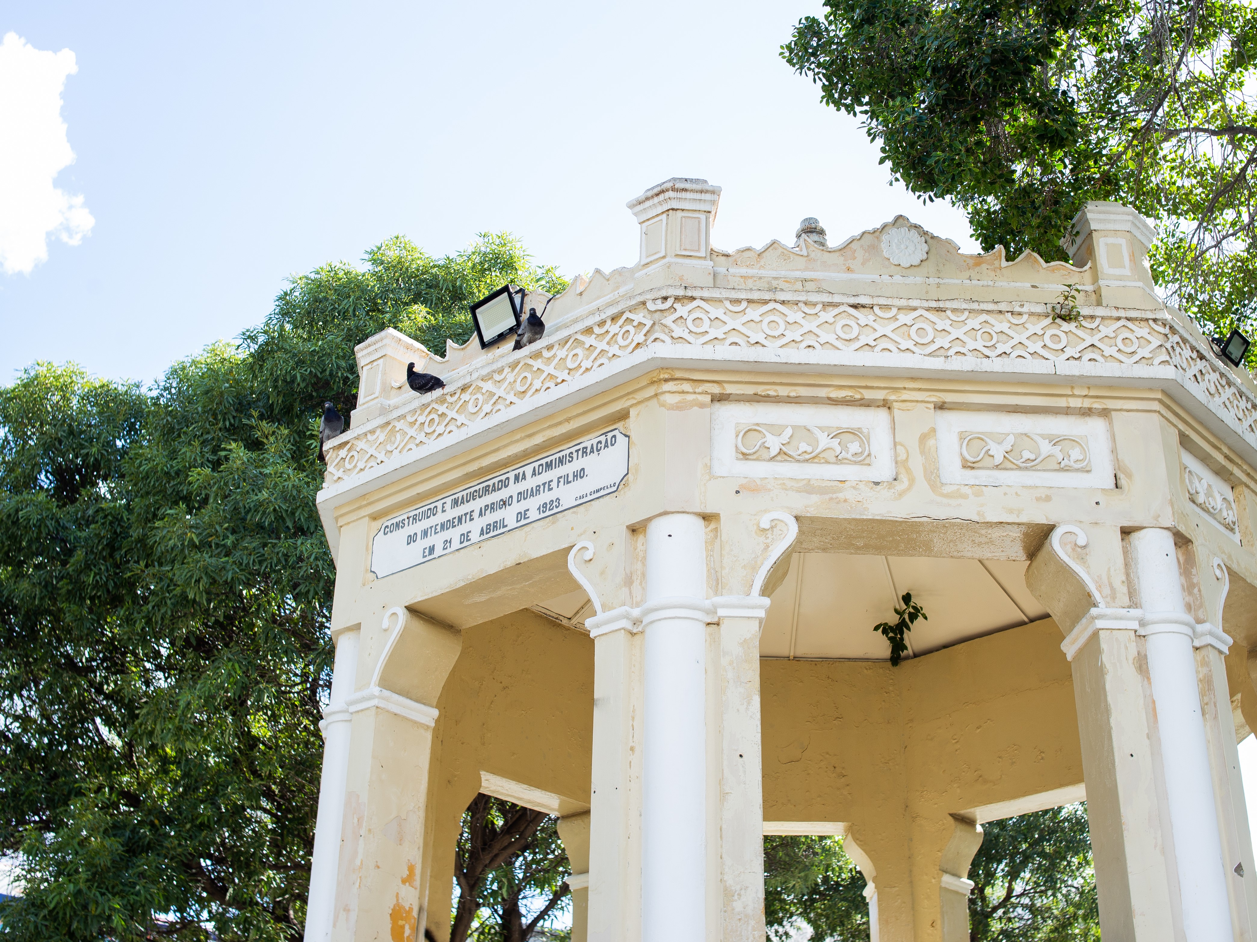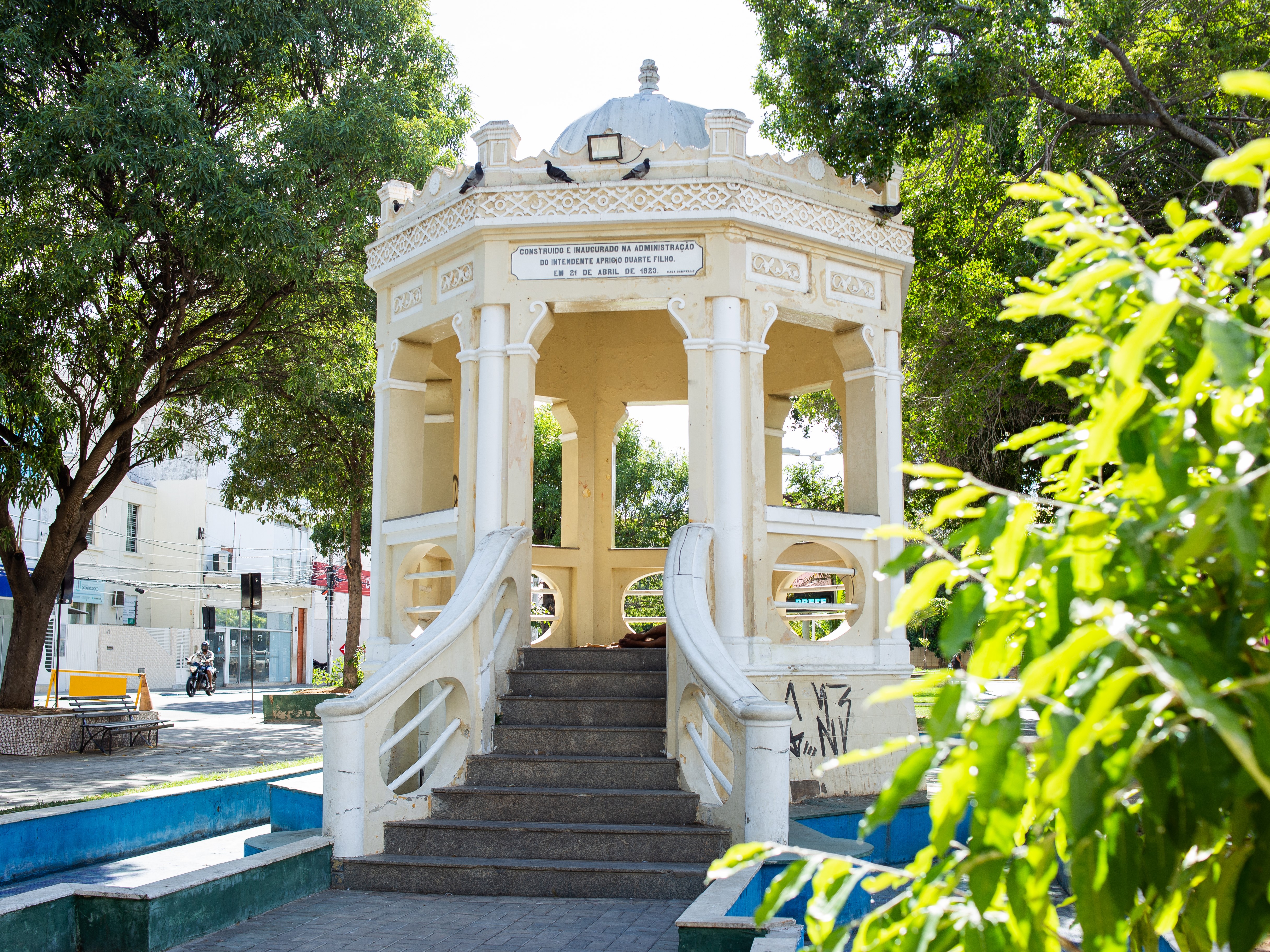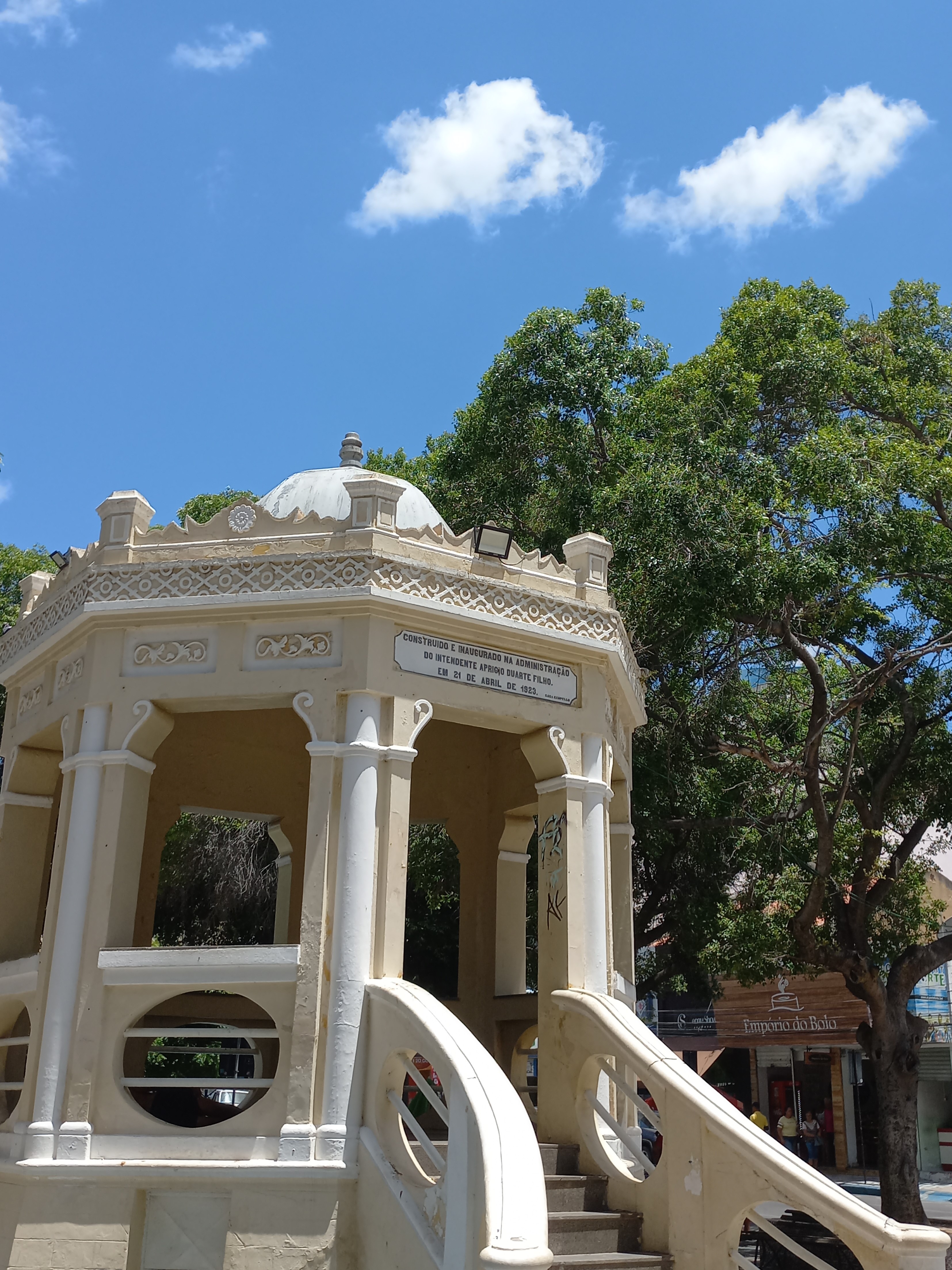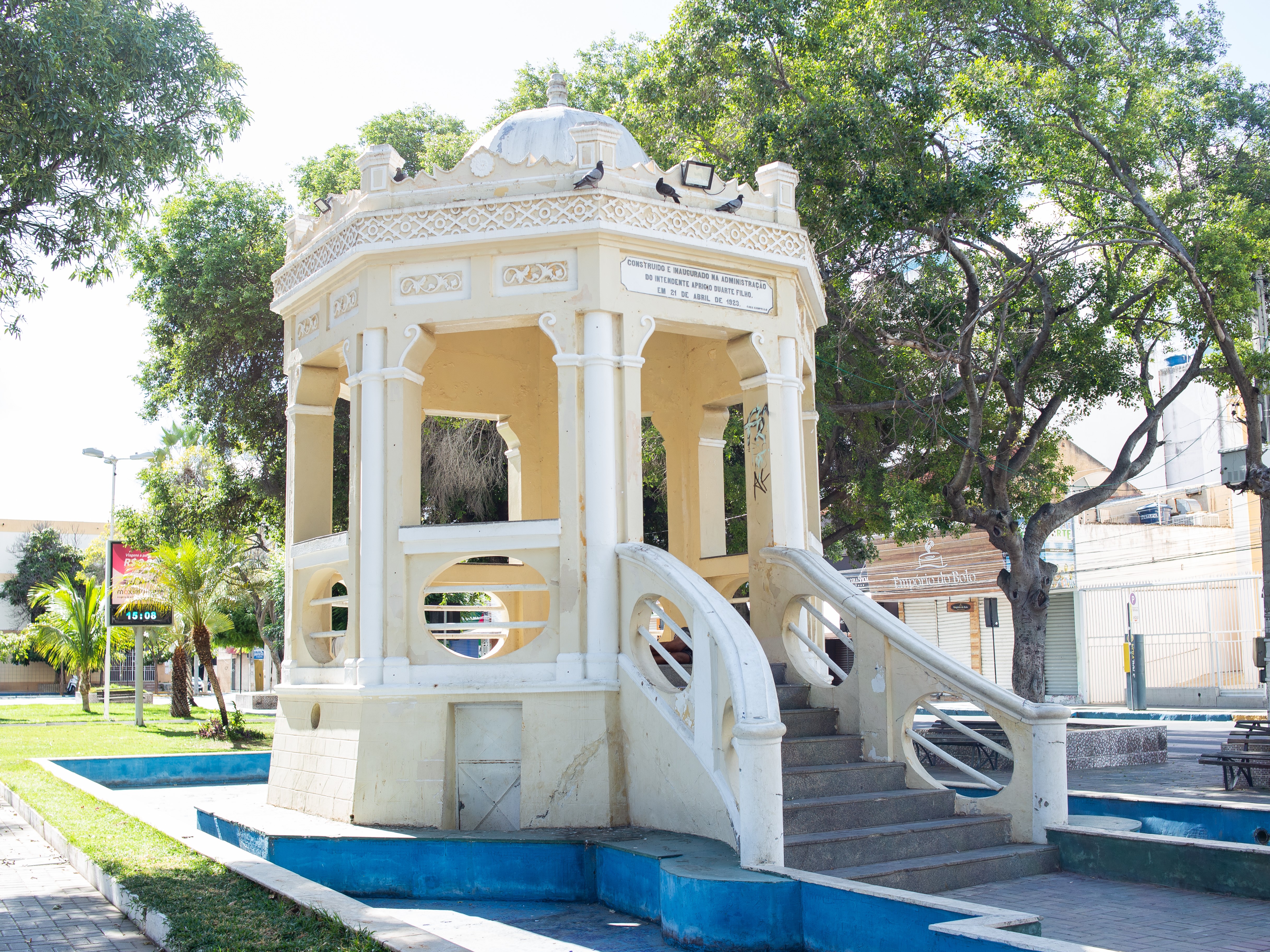 Edificação em estilo eclético inaugurada juntamente com a praça em 21 de abril de 1923. Apresenta estrutura ortogonal com uma base em alvenaria de pedra, com pequeno arrasto sobre o qual se elevam colunas de tijolo de barro cozido que sustentam cúpula de aresta metálica. O guarda-corpo, que contempla a região da escada e o coreto, é em alvenaria com círculos ovais com barra de ferro. O piso é o mesmo material da escada com um acabamento que lembra granilite. Toda a estrutura é rica em detalhes arquitetônicos. Encontra-se tombada pelo município, através da Lei N° 1.667/2002.