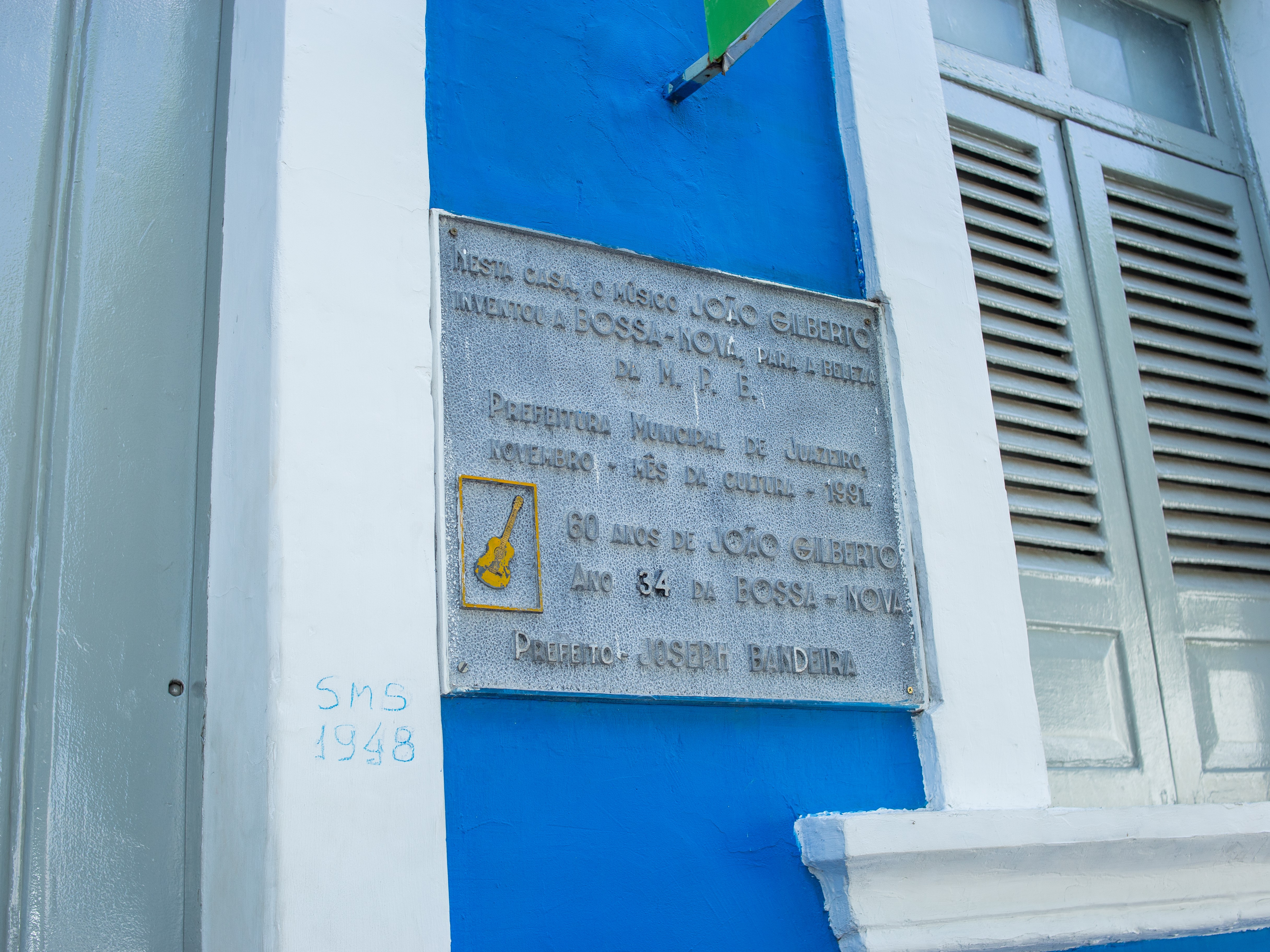 A edificação construída em 21 de maio de 1893, onde nasceu João Gilberto, tinha vista para o rio. Apresenta um pavimento em tijolo de barro cozido, em estilo neoclássico, que sustenta cobertura em várias águas de telha canal feita de barro cozido, anexo foi construído ao fundo posteriormente. A fachada frontal apresenta platibanda, cunhais, frisos, cimalhas e esquadrias em madeira de lei, uma porta de madeira com bandeira trabalhada de ferro, quatro janelas com venezianas, almofadas, bandeiras em vidro. O piso interno é em parte hidráulico, assoalhado de madeira e cimentado, enquanto o forro é em gesso. Atualmente funciona o Memorial Casa da Bossa Nova, em homenagem ao músico João Gilberto. Encontra-se tombada pelo município, através da Lei N° 1.667/2002.