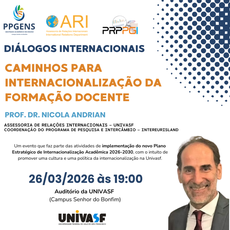 O Programa de Pós-Graduação em Ensino (PPGENS) da Universidade Federal do Vale do São Francisco (UNIVASF), em parceria com a Assessoria de Relações Internacionais da UNIVASF (ARI), realizará no dia 26 de março de 2026, às 19h, o evento “Diálogos Internacionais: caminhos para a internacionalização da formação docente”.