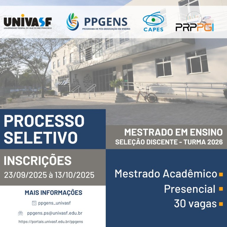 Seleção da Turma 2026 do Mestrado em Ensino da UNIVASF