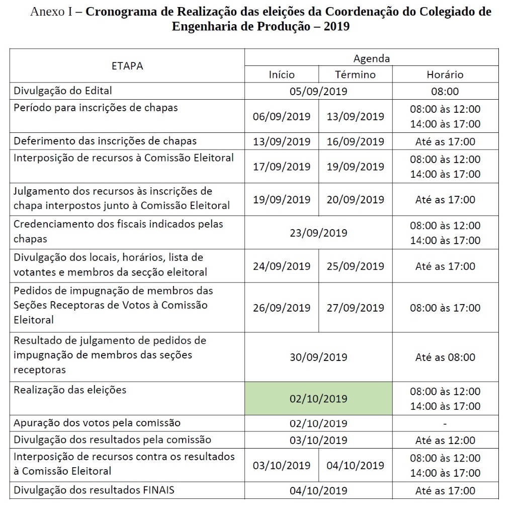 Processo eleitoral para eleições de coordenador (a) e sub-coordenador (a) do Colegiado Acadêmico de Engenharia de Produção (PRODSAL)