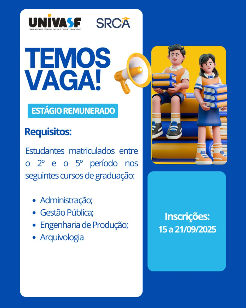| 15/09/2025 | Secretaria Acadêmica da Univasf abre seleção de estágio administrativo |